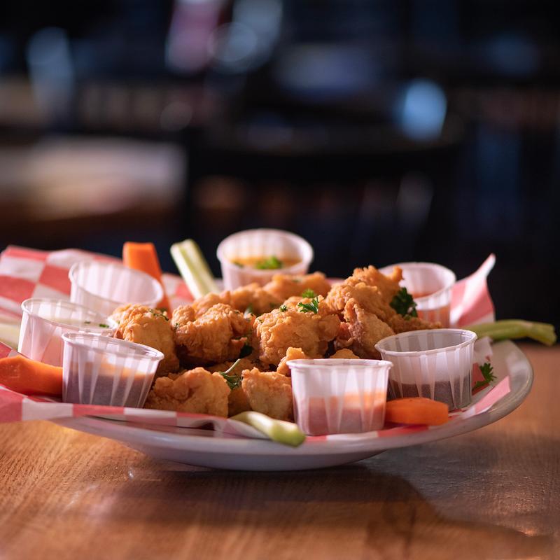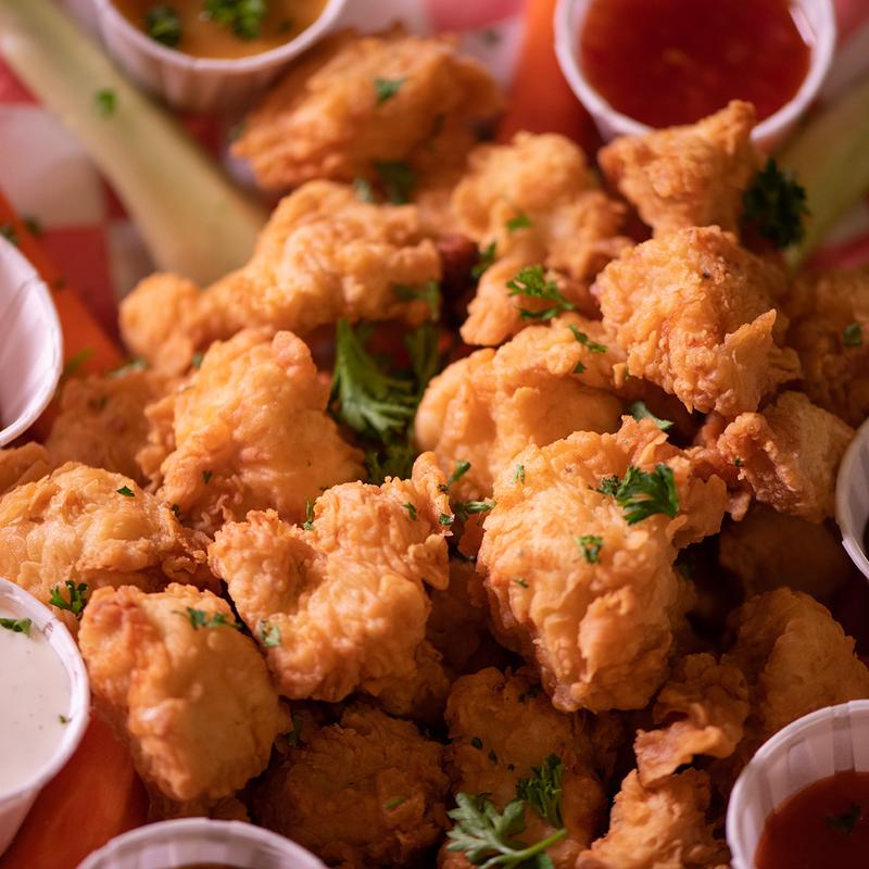 Cauliflower florets battered, fried and tossed in buffalo sauce, served with ranch